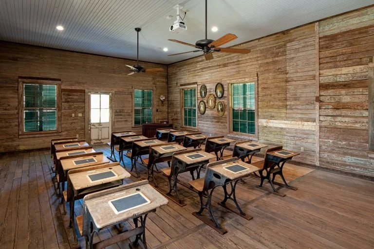 The award-winning rehabilitated school now serves 21st century educational purposes within a historic setting. Shown here, a portion of the building is interpreted as an early school room.