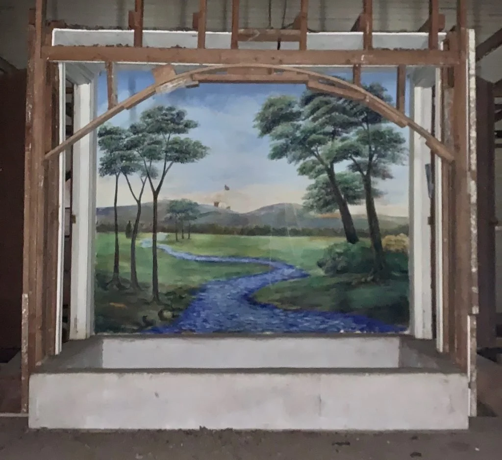 In 1953, the women of the church raised the funds to commission a local artist, Marian Kyle, to paint a mural of the River Jordan above the baptistery. The long-term protection and restoration of this mural will be an important part of the project.